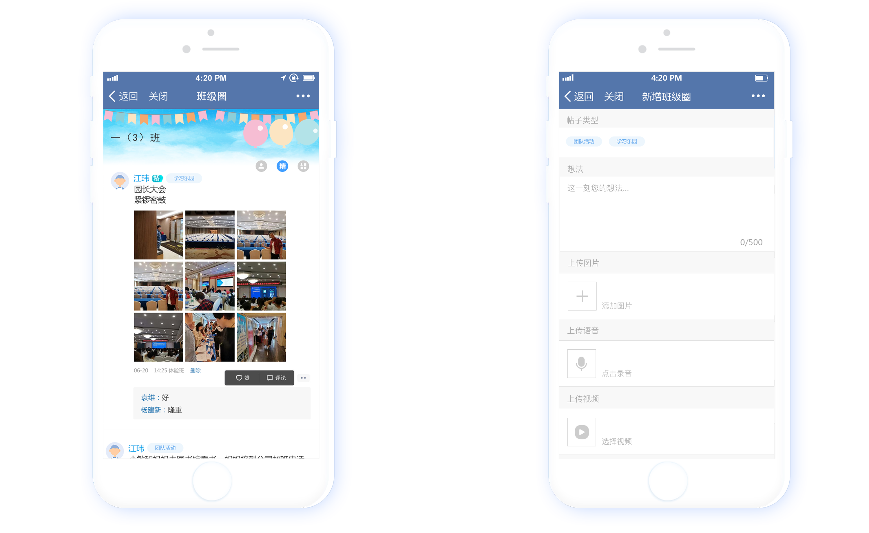 φ¥☆利用(yòng)圖片、文(wén)字、視(shì)☆ו頻(pín)等功能(néng),更好(hǎo)的(de)展現 §€®(xiàn)學校(xiào)各班級的(de)風(fēng)采,形成自(δ↑≈zì)己班級獨特的(de)班級圈。