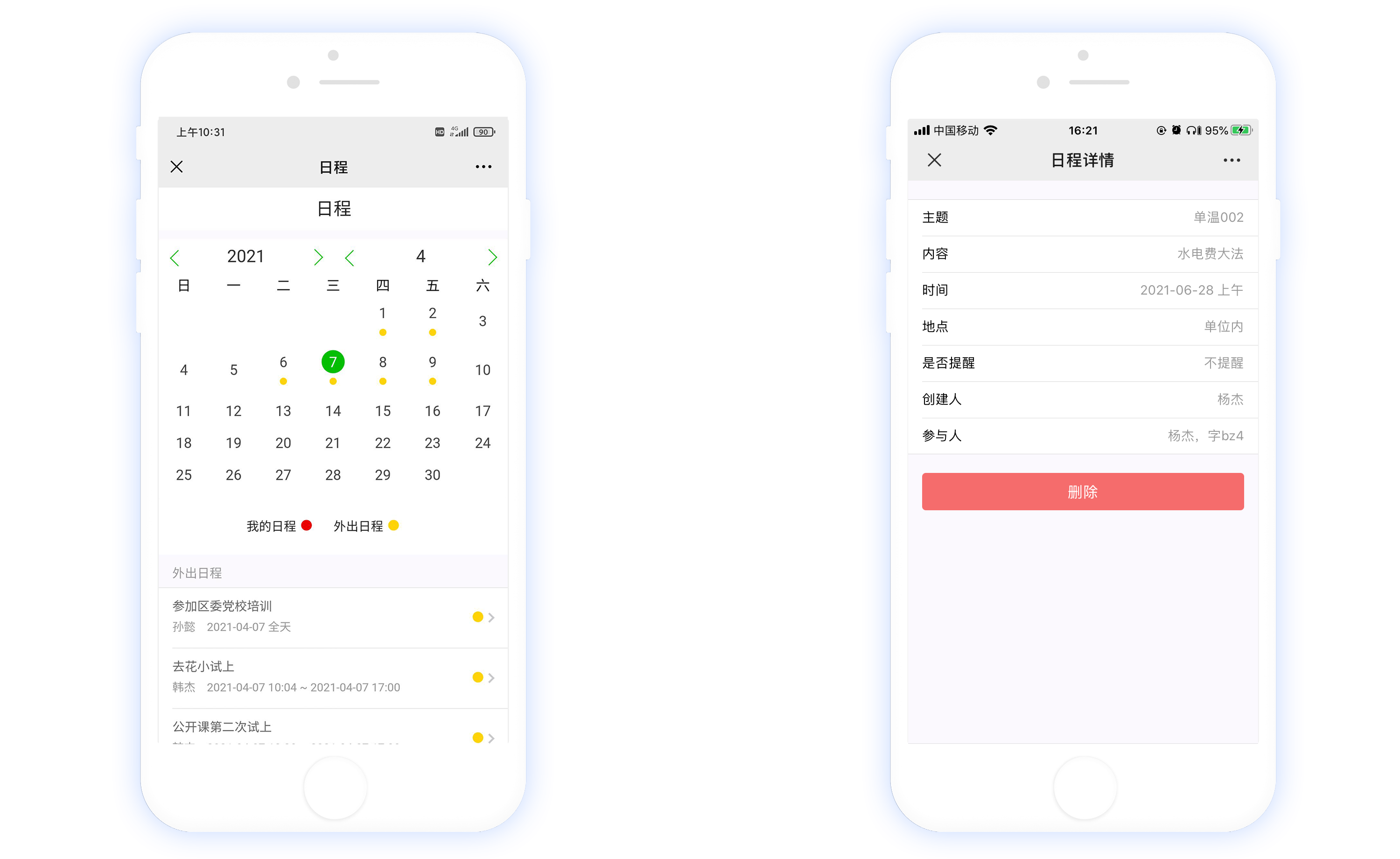 日(rì)程模塊≠≤σ主要(yào)為(wèi)了(le)解決用(yòng)戶↑₹的(de)日(rì)程安排查看(kàn)和(hé)日(rì)程提醒的(de) ✔¶¶問(wèn)題,同時(shí)解決領導安排員(yuán)工(gōng)的>₹→(de)工(gōng)作(zuò),便于領導可(k¶₩ě)以及時(shí)掌握員(yuán)工(gōng)的(de)動态↓§→★。