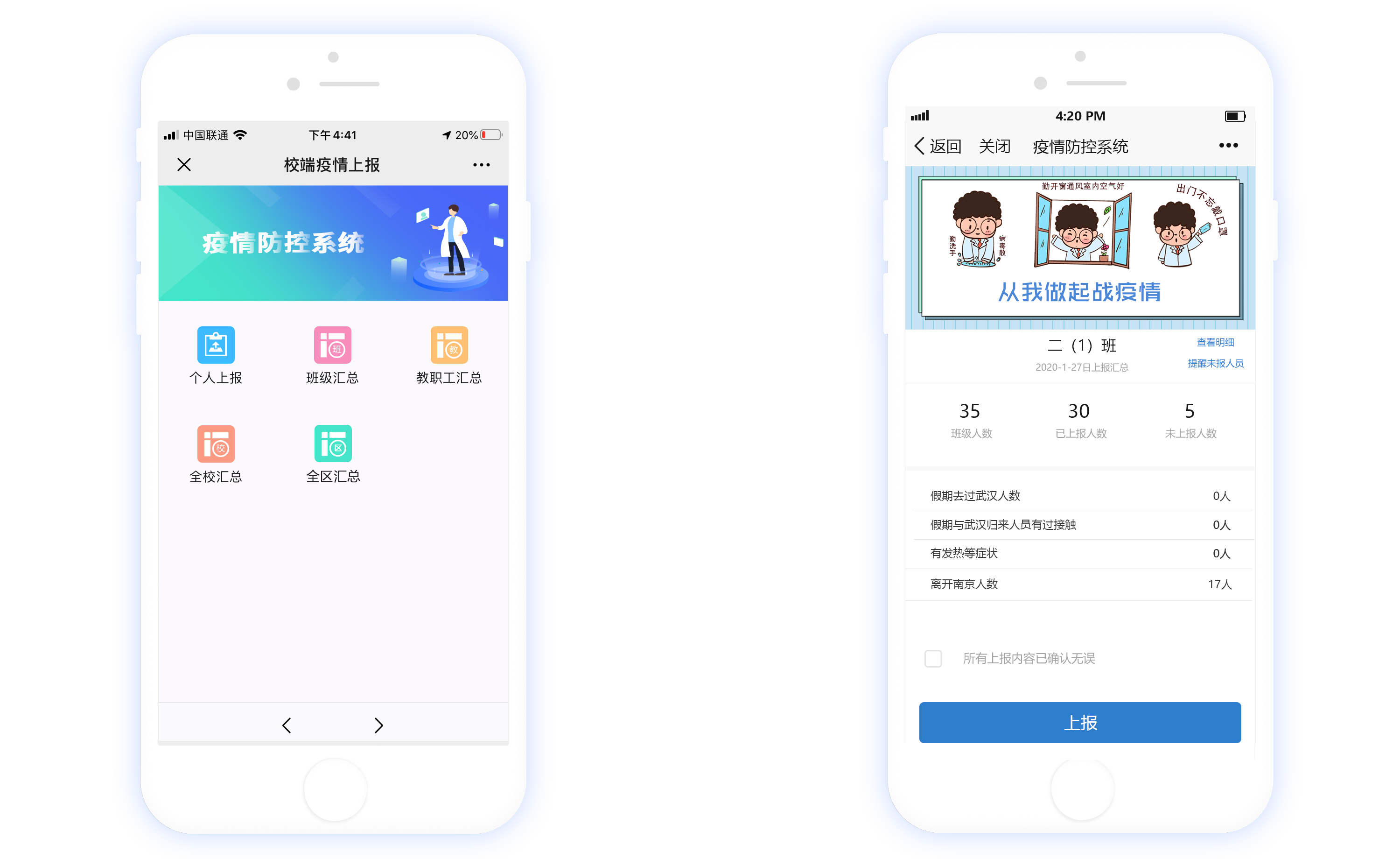 上§¶☆(shàng)報(bào)教職工(gōng÷≠≥•)健康信息,實時(shí)彙總把握詳情,支持導出相(xiàn✔ ∏g)關人(rén)管名單,便捷高(gāo)效數✔ ↓>(shù)據支持班級彙總,校(xiào)級彙≈σ總,區(qū)級彙總。